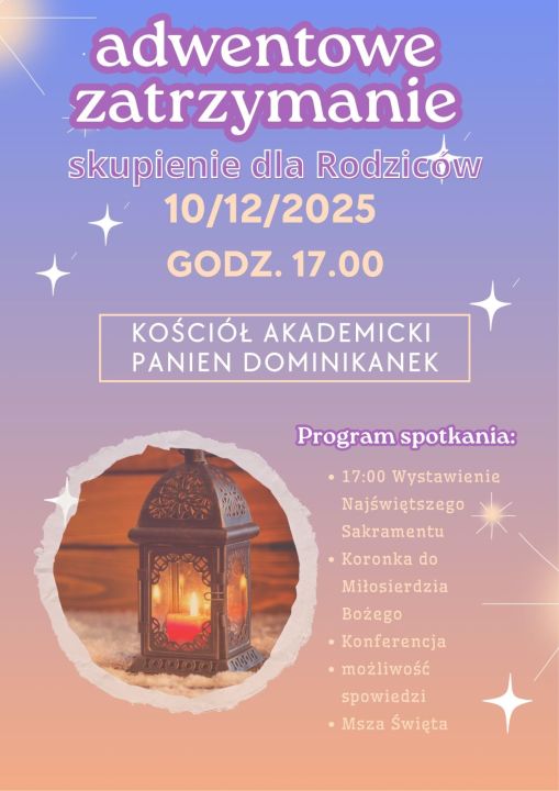 CZAS REKOLEKCJI : 15 listopada - 17 listopada 2024 r. (zaczynamy o 19:00 w piątek, zakończenie w niedzielę około godz. 13.00)